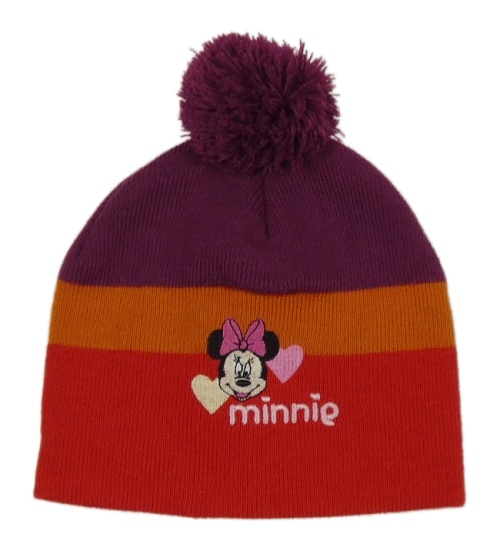 Červeno-oranžovo-fialová pruhovaná pletená čepice s Minnií Disney