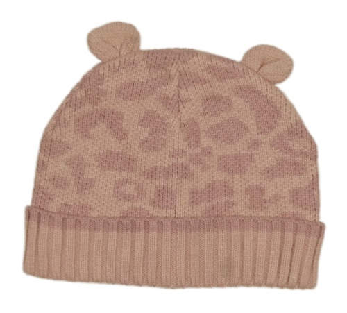 Světlerůžovo-starorůžová vzorovaná pletená čepice s oušky