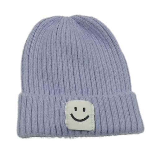 Levandulová žebrovaná pletená čepice se smajlíkem MANOR