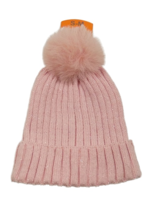 Nové - světlerůžová žebrovaná pletená čepice se třpytkami a bambulí PRIMARK