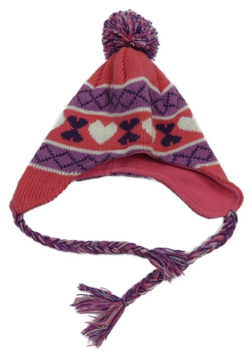 Tmavorůžovo-levandulová vzorovaná čepice s bambulí Kids