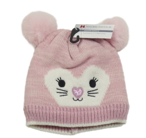 Nové - Růžová melírovaná čepice s čumákem a bambulemi