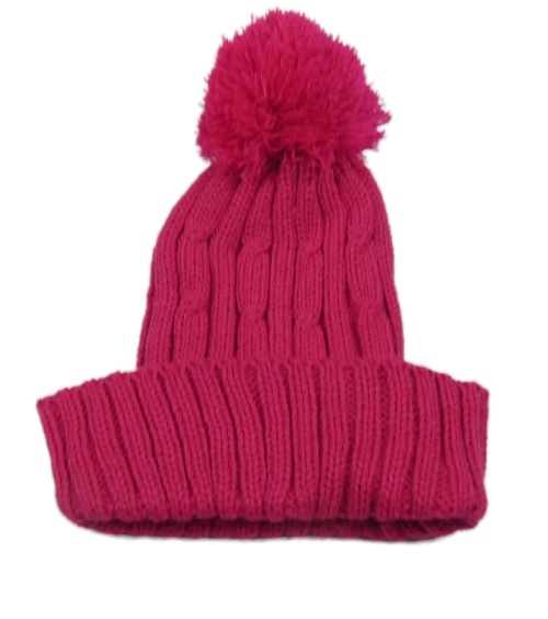 Neonově růžová čepice s bambulí