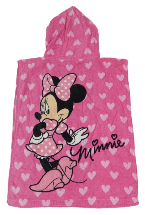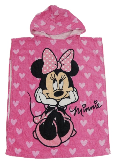 Tmavorůžové froté osuškové pončo s Minnie a kapucí Primark