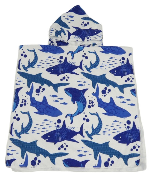 Bílo-modré osuškové pončo s velrybami a kapucí