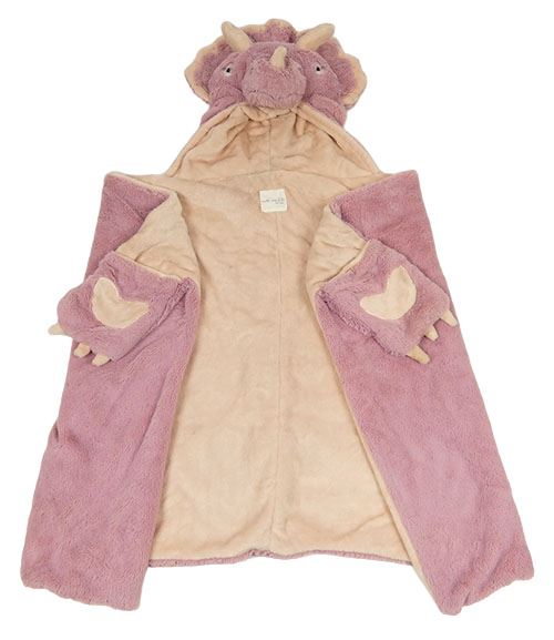 Růžovo-broskvová chlupatá zateplená televizní deka s kapucí a ostny - dinosaurus Next