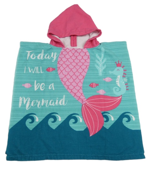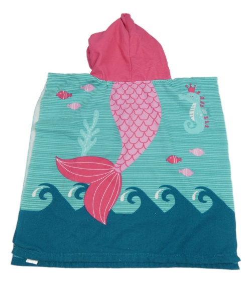 Tyrkysovo-růžové osuškové pončo s ocasem mořské panny a kapucí