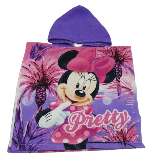 Růžovo-fialové froté osuškové pončo s Minnie a kapucí
