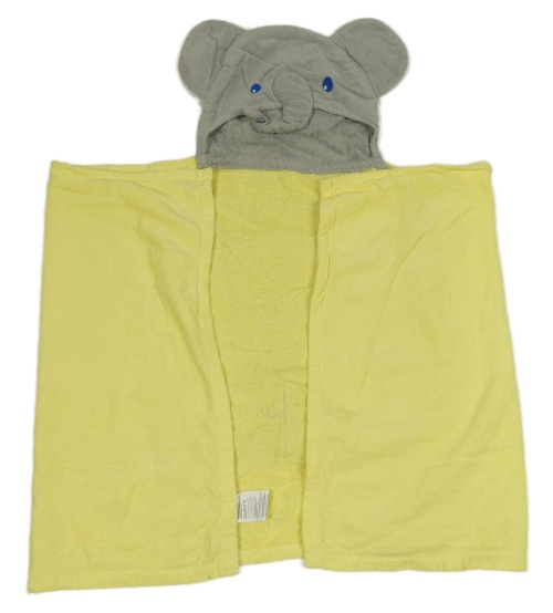 Žluto-šedá froté zavinovací osuška s kapucí - sloník