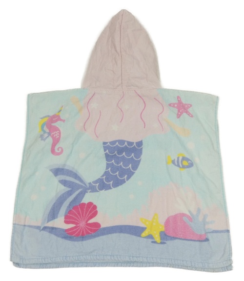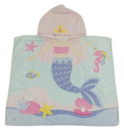 Světlemodro-světlerůžové froté osuškové pončo s mořskou pannou a kapucí