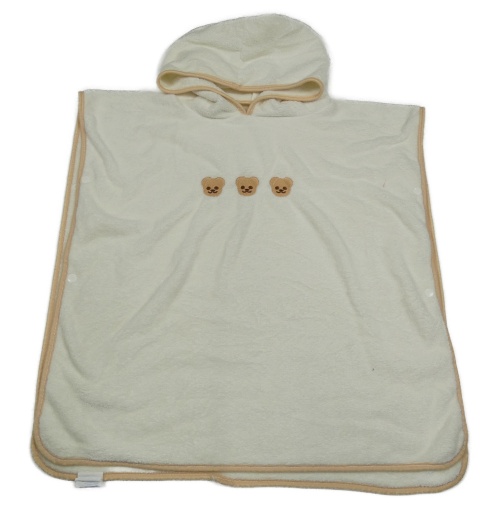 Smetanové plyšové domácí pončo s medvídky a kapucí