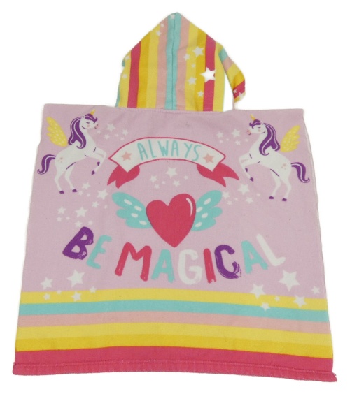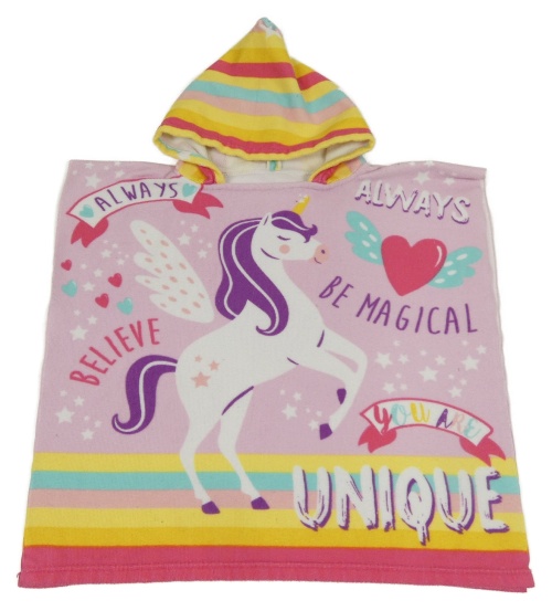 Růžovo-barevné osuškové pončo s jednorožci a kapucí