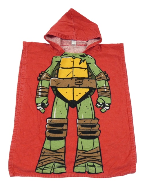 Červené froté osuškové pončo s kapucí - Želva Ninja George