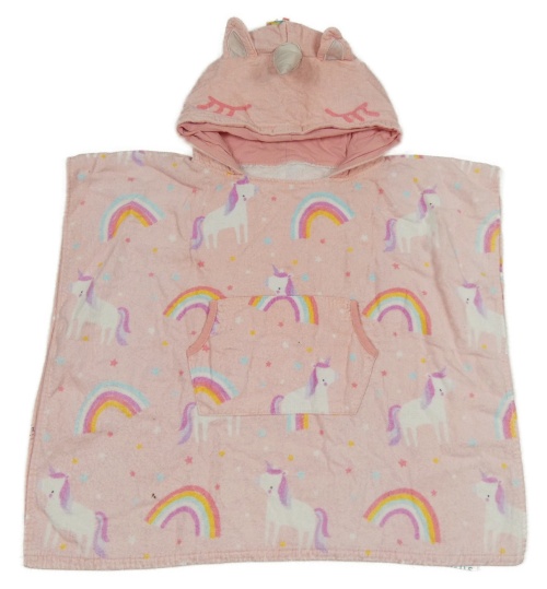 Růžová froté osuškové pončo s jednorožci a kapucí