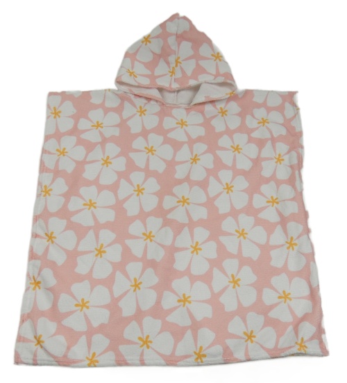 Světlerůžové froté osuškové pončo s kytičkami a kapucí