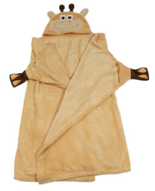 Béžová plyšová zavinovací deka s kapucí - žirafa