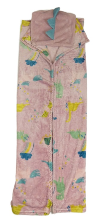 Starorůžová chlupatá deka s dinosaury a kapucí