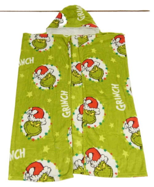 Zelená plyšová zavinovací deka s Grinchem a kapucí