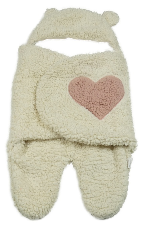 Béžovo-růžová huňatá zavinovací deka do autosedačky se srdíčkem