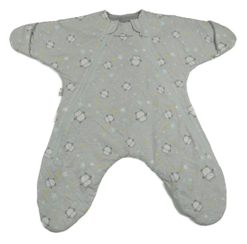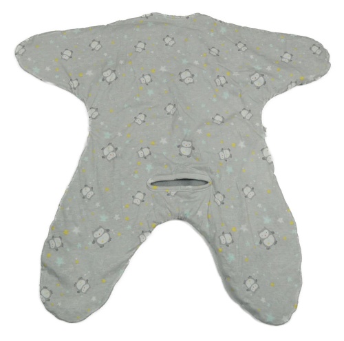 Světlešedý zateplený overal s tučňáky do autosedačky