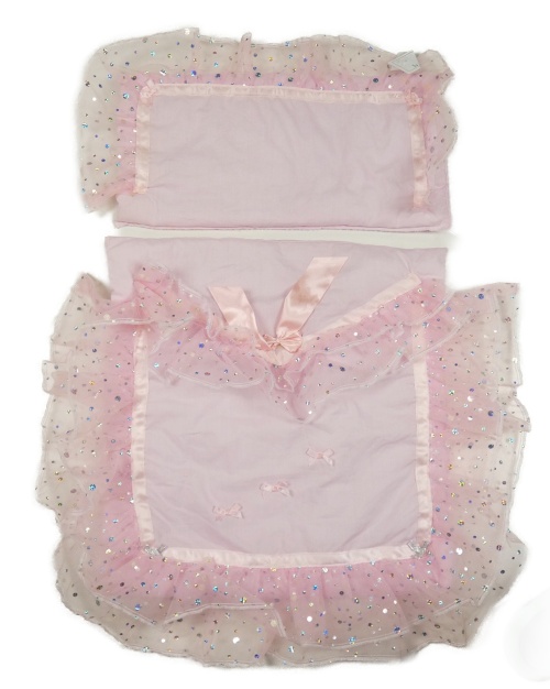 2 set - růžová peřinka s volánky + polštářek do košíku