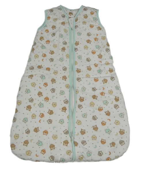 Bílo-zelený bavlněný zateplený spací pytel se sovami
