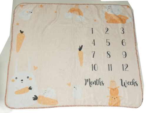 • Meruňková plyšová milníková deka se zajíčkem a mrkvičkami a číslicemi