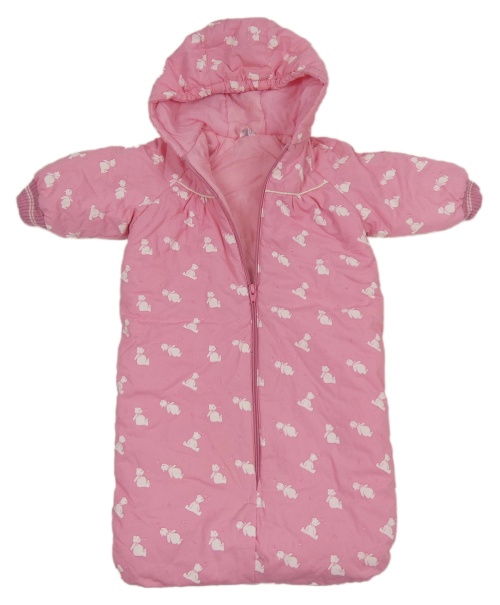 Růžový šusťákový zimní fusak s medvídky a kapucí