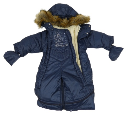 • 3v1 - Tmavomodrý prošívaný šusťákový zimní fusak s kočičkami a kapucí s kožešinou + rukavice