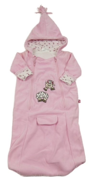 Světlerůžový fleecový podšitý spací pytel s ovečkami a kapucí
