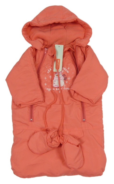 Nové - korálový šusťákový zateplený fusak s obrázkem a kapucí + rukavice