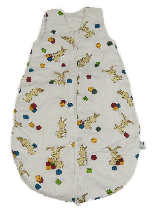 Bílý zateplený spací pytel s králíky a kostkami