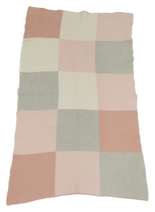 Růžovo-šedá kostkovaná pletená deka Next