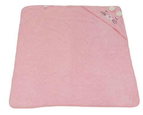 Růžová chlupatá deka s kapucí s kočkou