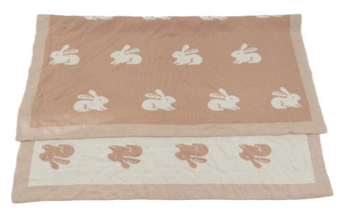 Starorůžová pletená deka s králíky