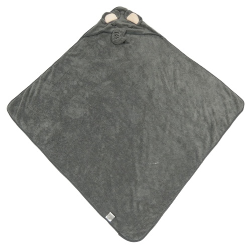 Tmavošedá chlupatá zavinovací deka s kapucí se slonem