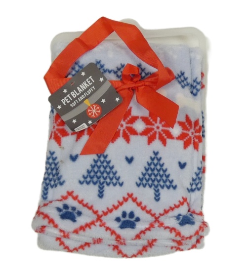 • Nové - Světlemodro-červená plyšová deka s vánočním motivem