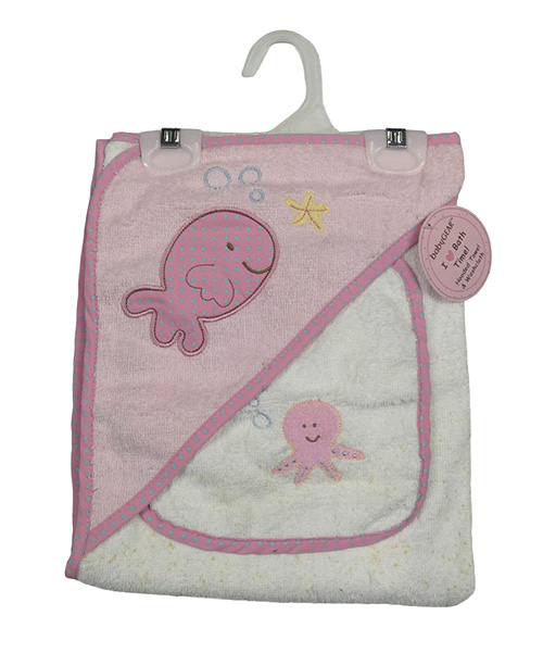 Nové - 2 set - bílo-růžová froté osuška s rybou a kapucí + žínka