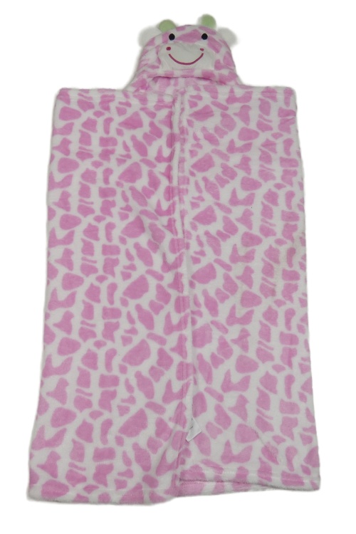 Bílo-růžová vzorovaná chlupatá zavinovací deka s kapucí - žirafa