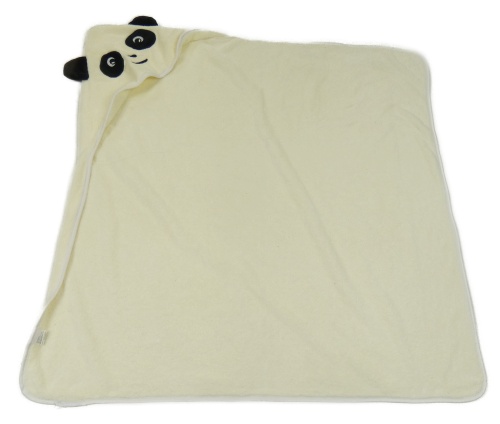 Krémová chlupatá deka s kapucí s pandou