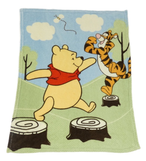 Světlemodro-zelená plyšová deka s Pú a Tygrem Disney