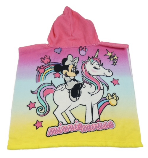 Růžovo-modro-žluté froté osuškové pončo s Minnie a kapucí