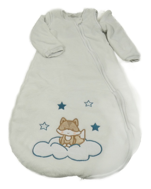 Bílý chlupatý zateplený spací pytel s liškou