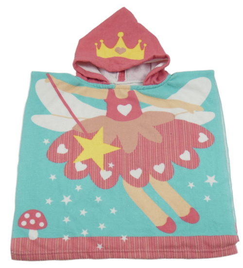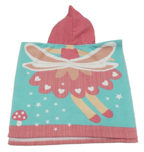 Modro-růžové froté osuškové pončo s vílou a kapucí