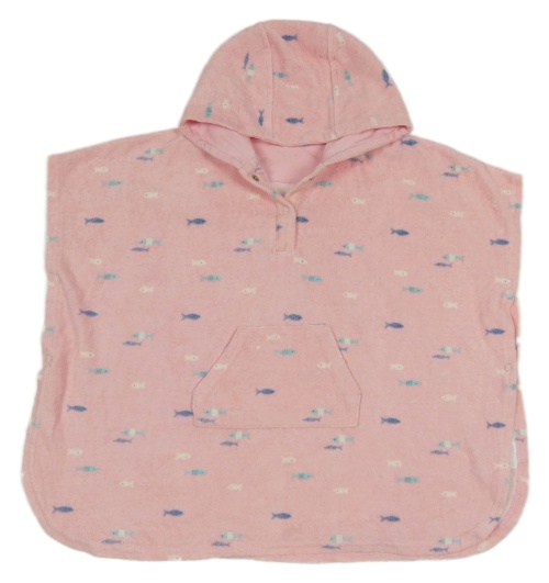 Světlerůžové froté pončo osuška s rybičkami a kapsou a kapucí John Lewis