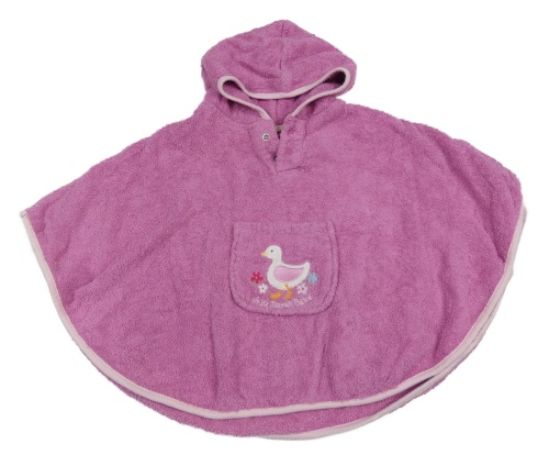 Tmavorůžové froté osuškové pončo s husou a kapucí Jojo Maman Bébé