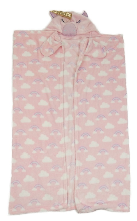 Světlerůžová chlupatá deka s kapucí - jednorožec