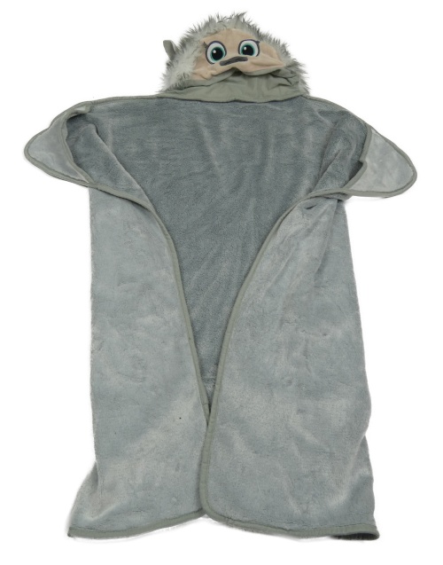 Šedá chlupatá zavinovací deka s kapucí s čumákem