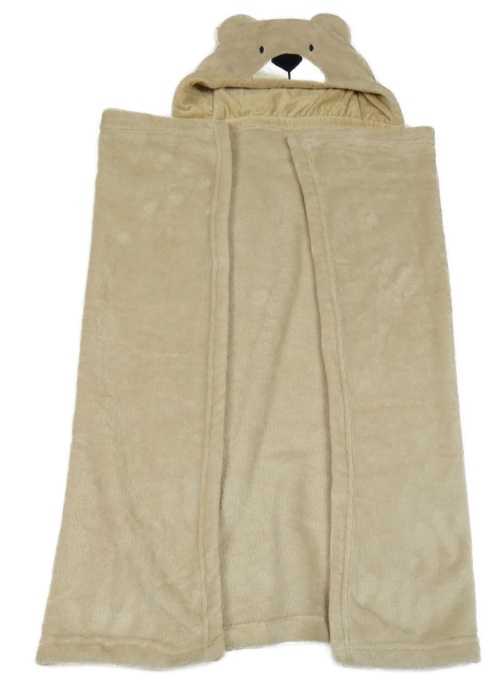 Béžová plyšová deka s kapucí s medvědem