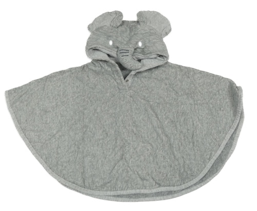 Šedé froté osuškové pončo s kapucí- slon